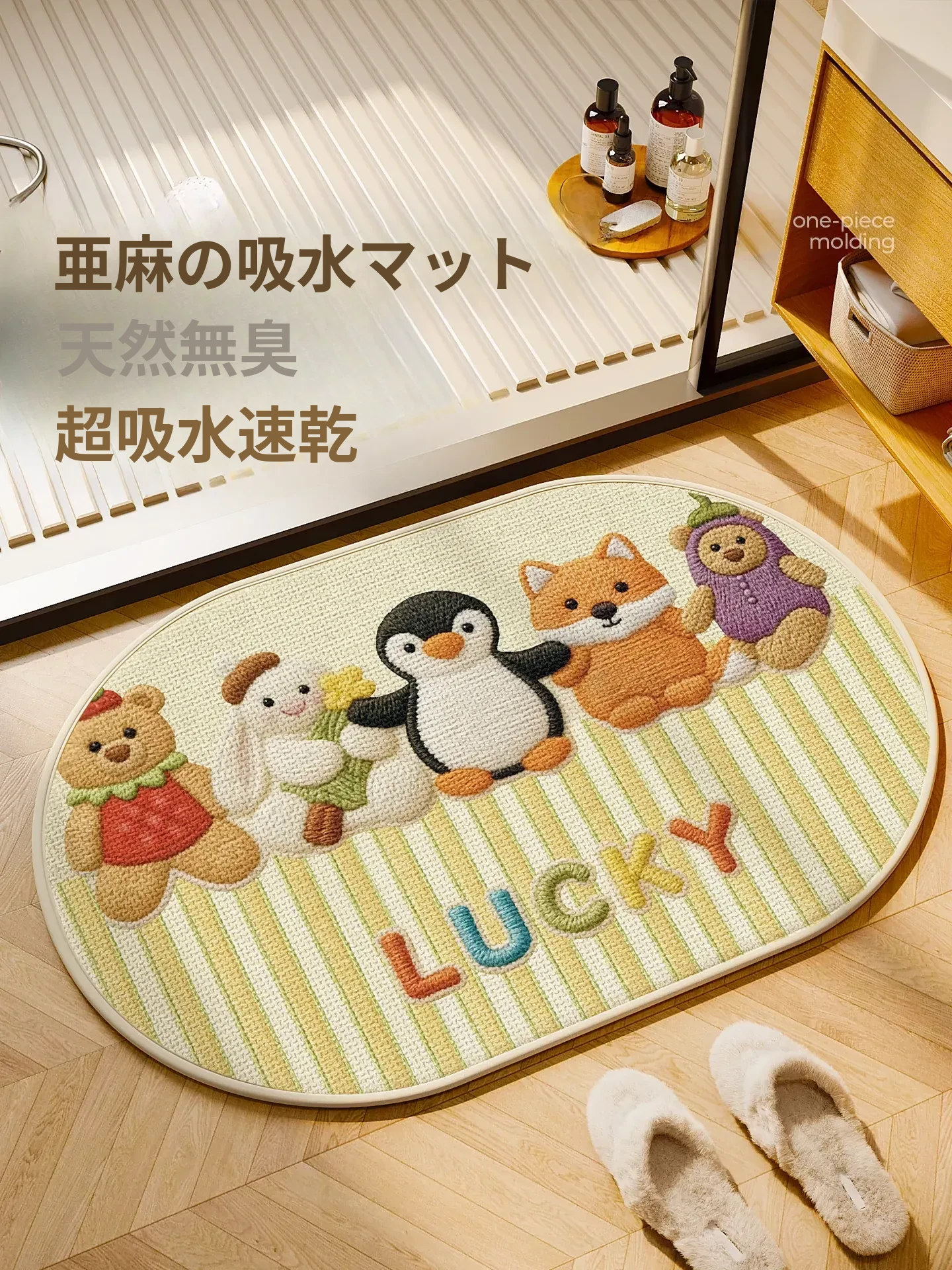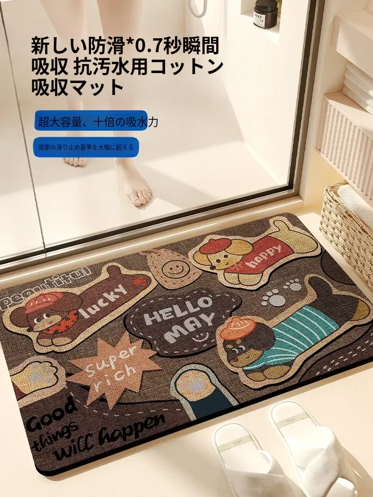 可愛いカートゥーントイレマット2026新作!家庭用バスルームマット、吸水性抜群の珪藻土製で滑り止め機能付き。おしゃれで快適なトイレ空間を演出します!