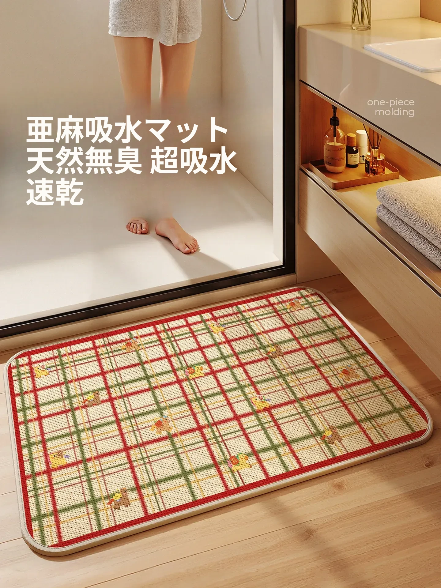 リネン製吸水バスマット - トイレの入り口に最適!滑り止め付き、デザイン性に優れたデコレーションマット。お手入れ簡単で、毎日の洗面所をもっと快適に!