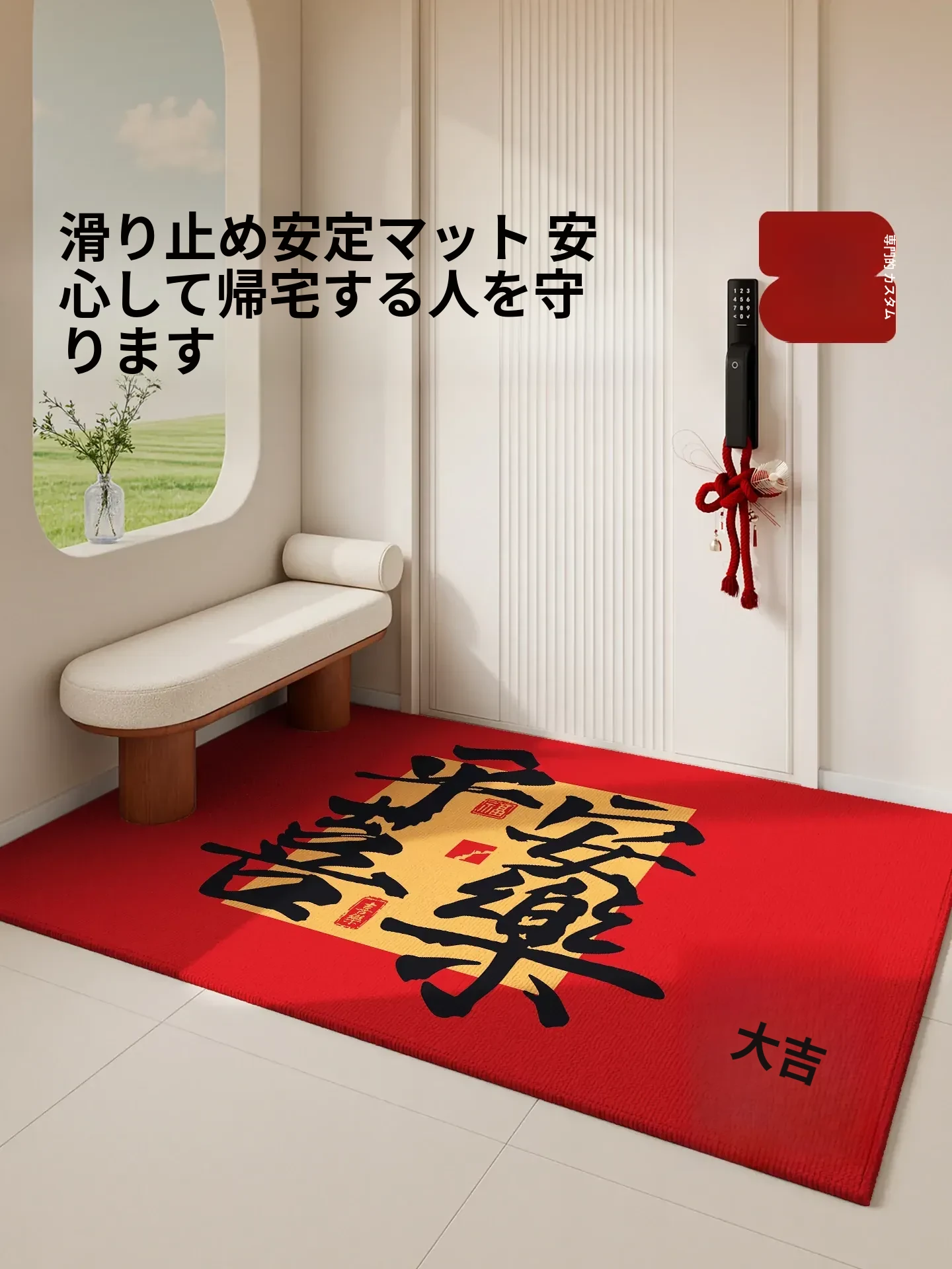 新年限定!赤い玄関マットで出入り安全!汚れに強く、洗わずに使える便利な玄関用マット。おしゃれで機能的、入門口を華やかに彩ります!