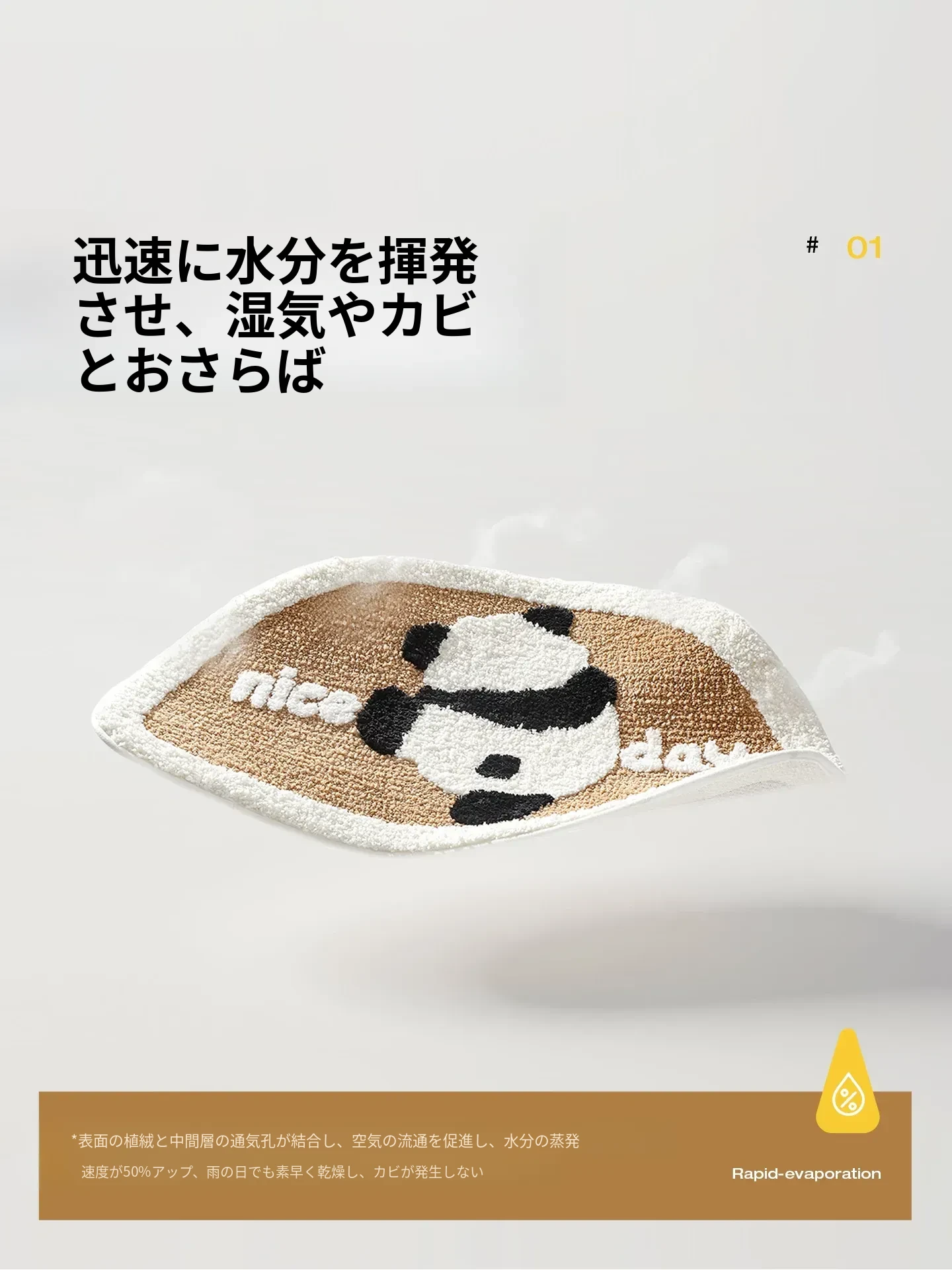 吸水性抜群!滑り止め付きバスルームマット - トイレの入口に最適な柔らかい珪藻土マット、速乾性で清潔感アップ!
