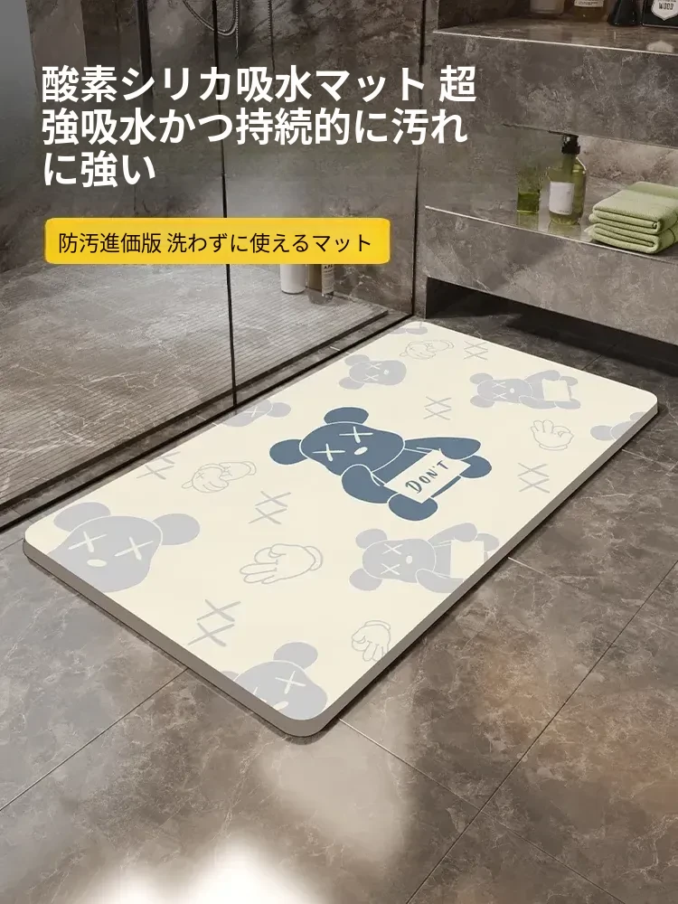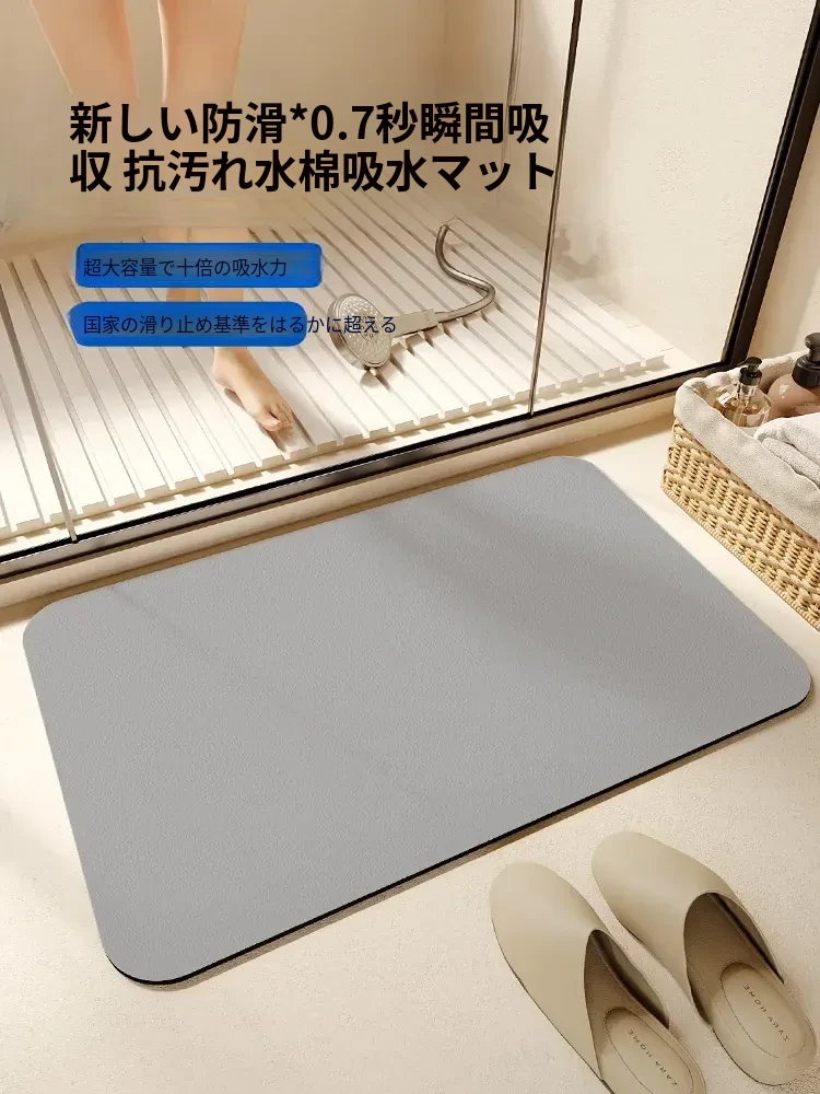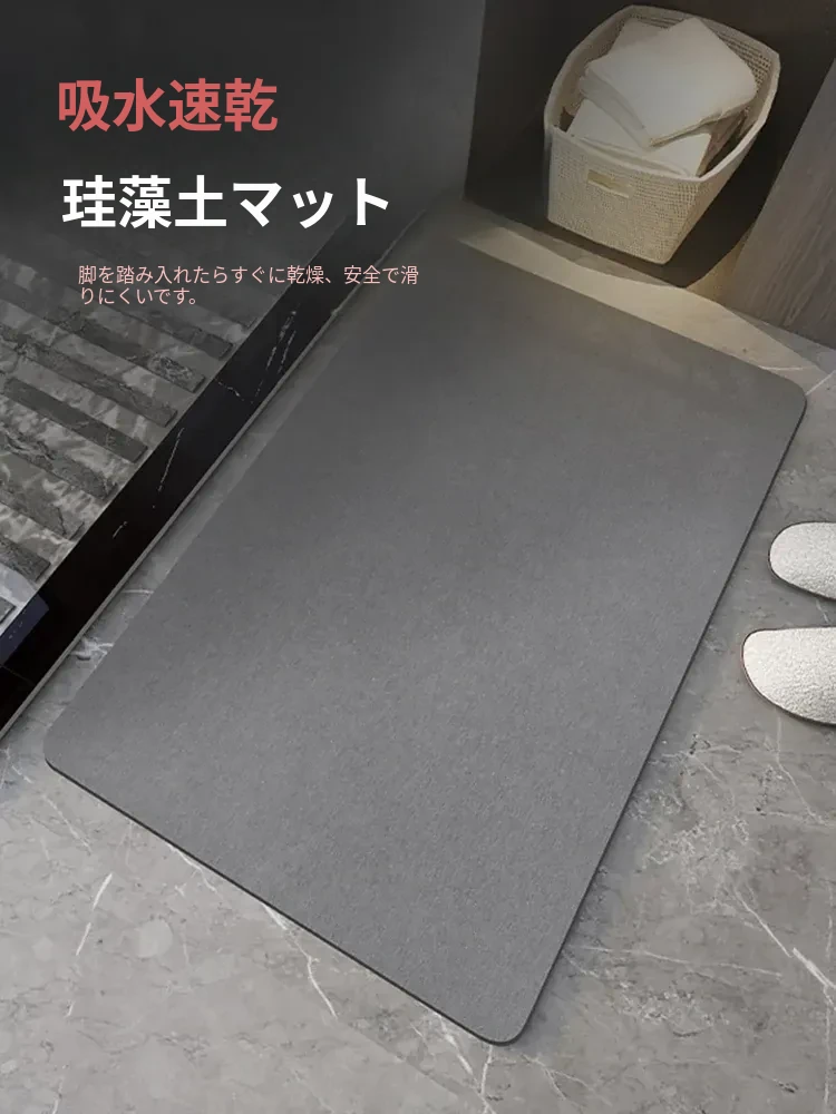 バスルーム用シリカゲル吸水マット!滑り止め付きで速乾性抜群、トイレや洗面所の入り口に最適な柔らかい足元マット。清潔感あふれるデザインで、毎日の快適なバスタイムをサポートします。