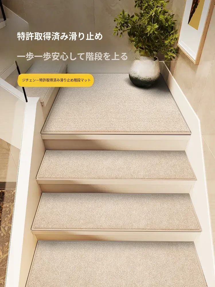 【特許取得済みの滑り止め】シンプルな日本風ファーモードの階段マット、滑り止め機能付きで安心!ノーグルーの自己粘着式、階段を美しく守ります!