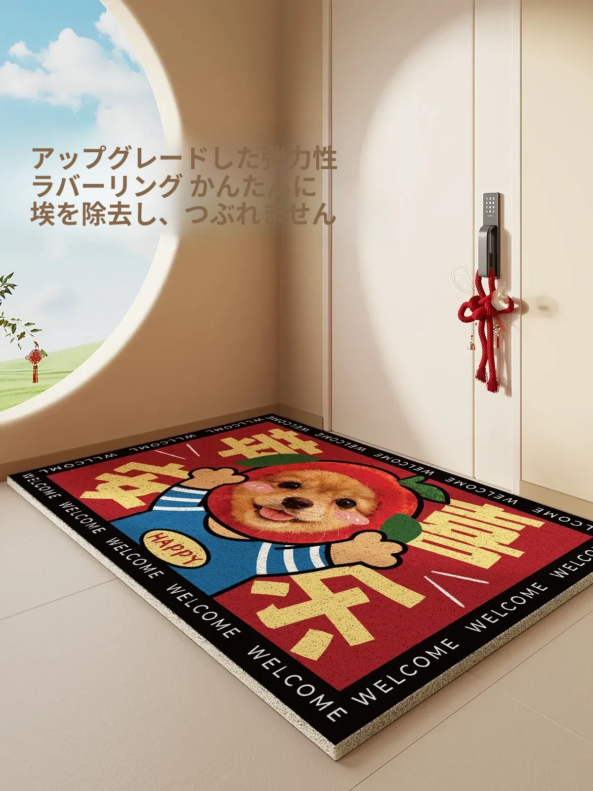 2026年新作!馬年を祝う高級感溢れるレッドの軽奢スタイル玄関マット。汚れに強く、滑り止め機能付きで安全・快適な入室をサポート!